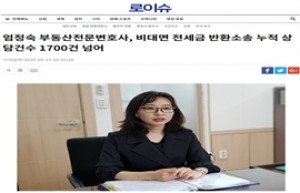 신종 코로나바이러스 감염증(이하 코로나19) 등으로 인해 법률 시장에서도 비대면 서비스가 증가하고 있다. 15일 엄정숙 부동산전문변호사는 법도 전세금반환소송센터를 통해 “비대면 전세금 반환소송 누적 상담건수가 1,700건을 넘어섰다”고 밝혔다.지난 2017년부터 비대면 맞춤 서비스를 제공해 온 ‘법도 전세금반환소송센터’는 온라인에서 질문 작성 카테고리를 세분화시켰다. 임대차계약날짜는 물론 확정일자, 전입신고일, 차임 연체 여부, 해지 의사 통보 방법과 일자 등 전세보증금 반환소송에 필요한 모든 정..